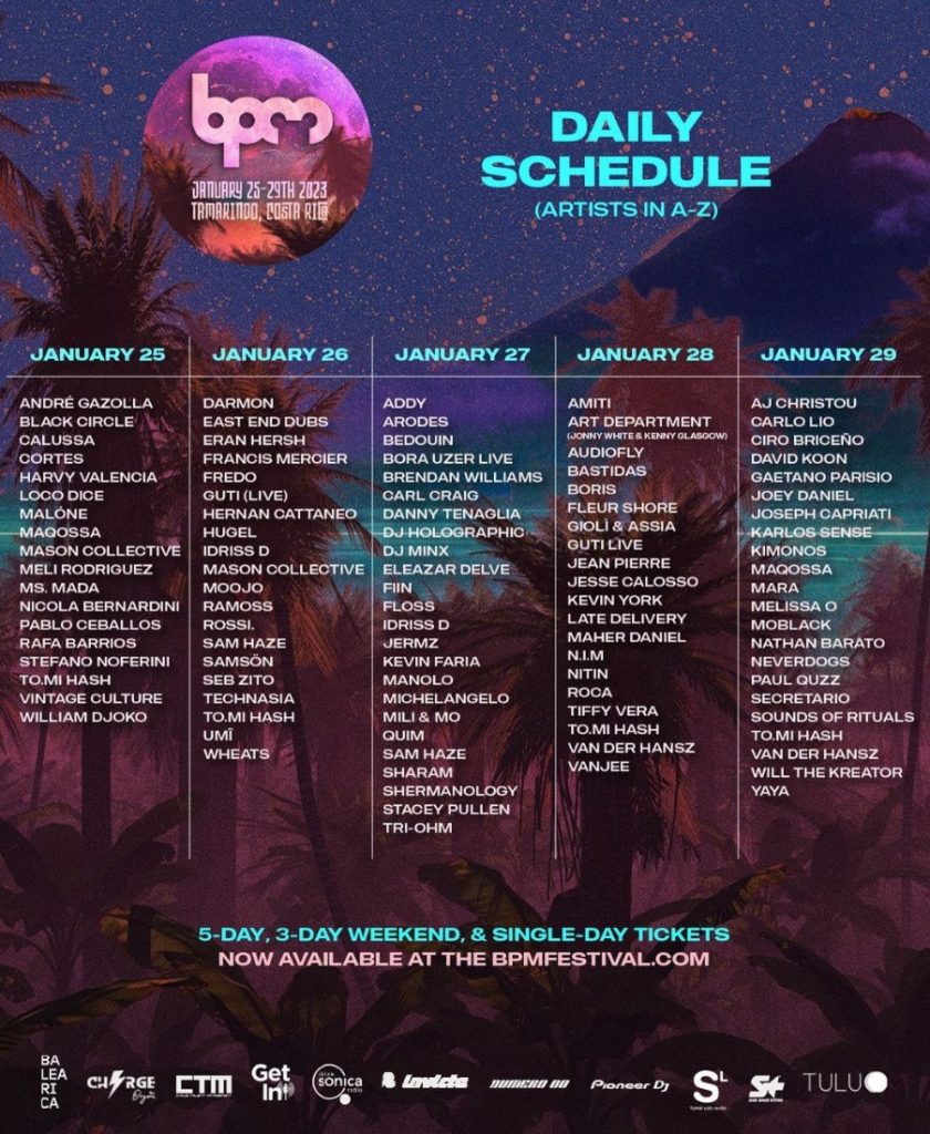The BPM Festival: Costa Rica – Lineup por día
