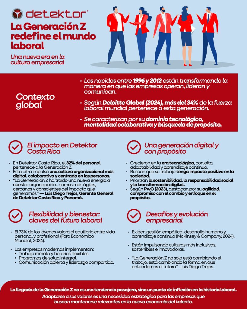 En Detektor Costa Rica, el impacto es evidente: el 32% de su personal forma parte de la Generación Z, una cifra que ha impulsado una renovación profunda en su cultura organizacional y en la forma en que la empresa concibe el liderazgo y la innovación.