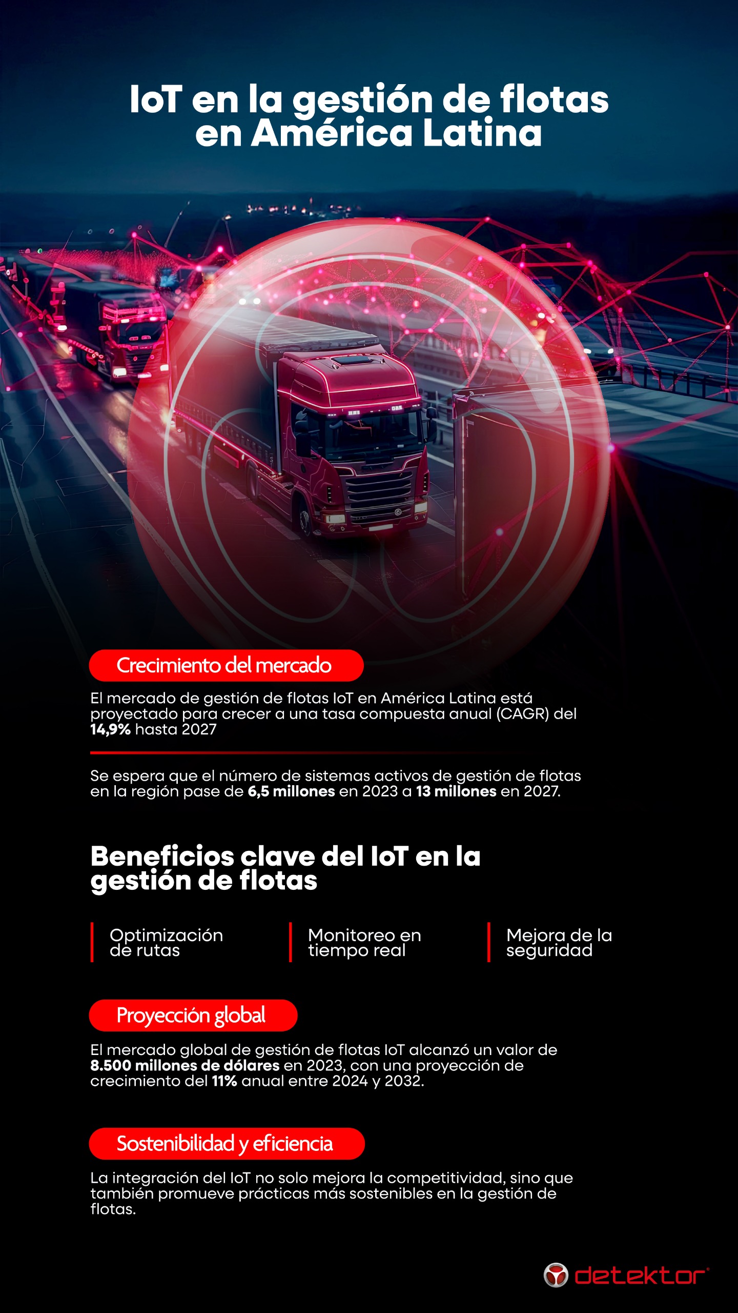 “Ahora, los datos que antes eran difíciles de obtener, como patrones de conducción, consumo de combustible o ubicación exacta de un vehículo, se generan y procesan en tiempo real utilizando IoT, y esto llega a facilitar decisiones más precisas e inmediatas”, afirmó Luis Diego Trejos, Gerente General de Detektor Costa Rica y Panamá.